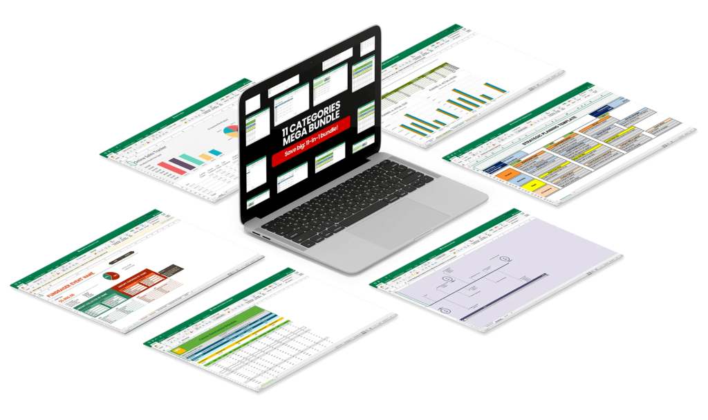 Our sole mission in creating this remarkable bundle is to assist you in professionally managing your data, swiftly and effortlessly. With a robust collection of templates spanning 11 different categories, we guarantee that your workdays will become exponentially easier.